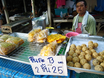 ちなみに看板は、「1個13バーツ、2個で25バーツ」
