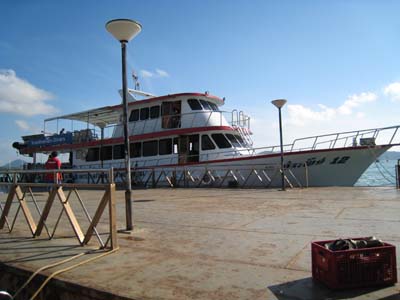 揺れるけれど、大きなボートの半分の時間で付くので、あっという間だから、ラク。