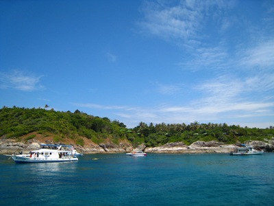 ラチャ・ヤイ島はプーケットのシャロン港から1時間半のクルーズ。