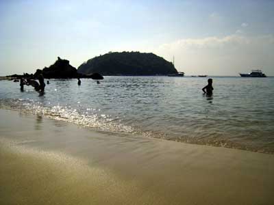 北のビーチに近づくにつれ、派手な打ち上げ花火・・・