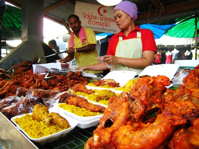 外はカリカリ、中はジューシー(に見える)から揚げの他に、サフランライスにフライドチキンを乗せたごはんを売ってる。